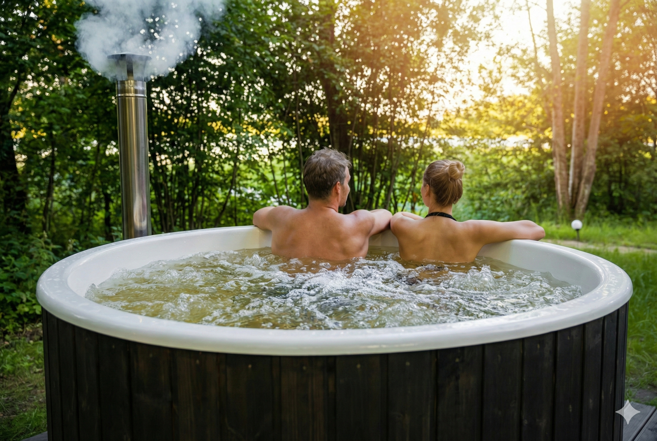 Le bain nordique peut accueillir de 4 à 8 personnes (détente en couple, moment convivial entre amis, ou réunion de famille).